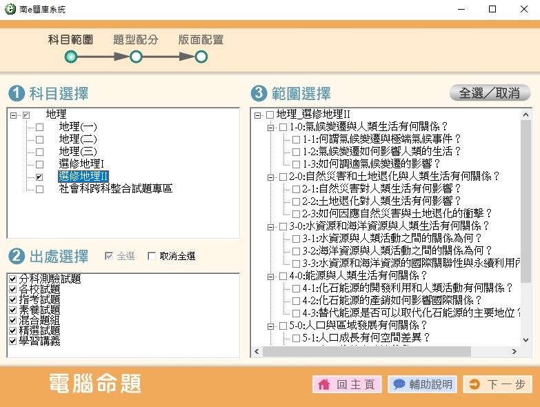 111學年下學期 高中命題光碟 南一版 地理(一、二、三、選修I、選修II、跨科整合試題)(108課綱) 題庫光碟