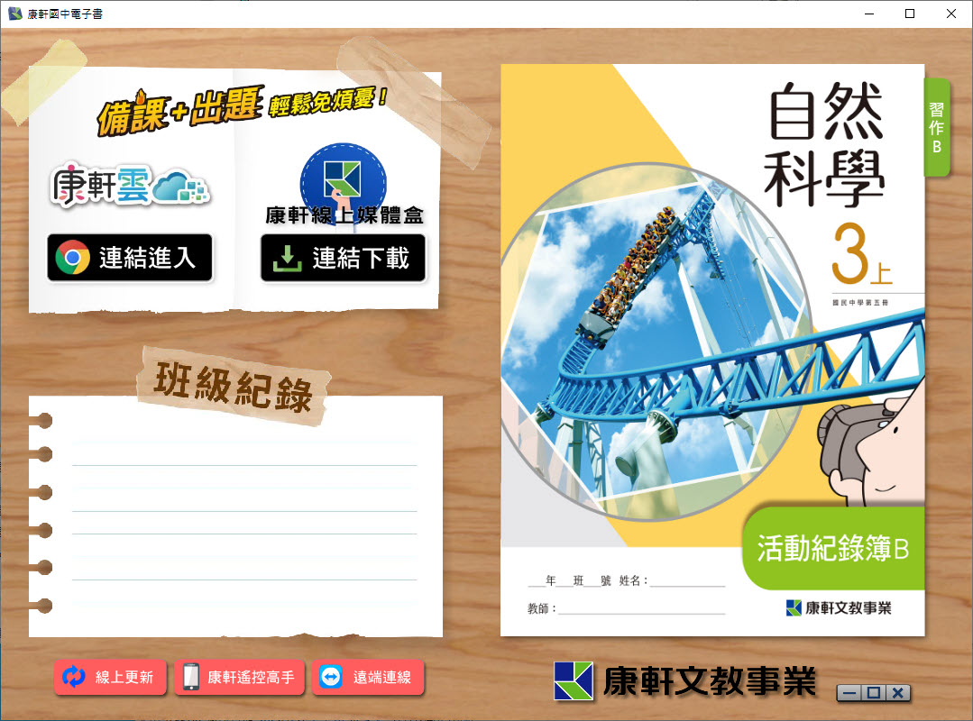 112學年上學期 國中 康軒版 自然 活動記錄簿B 電子書 3年級 教學光碟