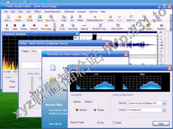 利用Power Audio Editor 你可以打開,建立及保存音頻文件,利用一個波形窗口顯示音頻文件,